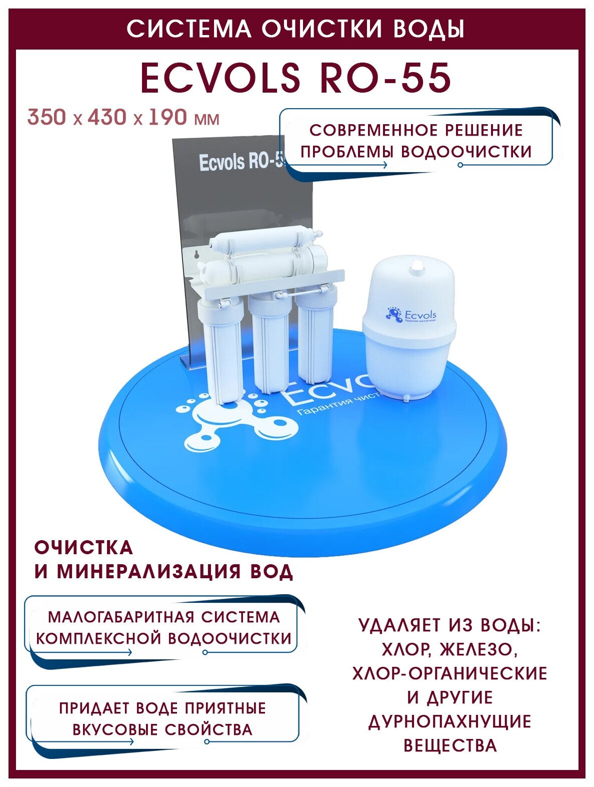 Система обратного осмоса Ecvols RO-55, 5 ступеней, бак 10 л, очистка 99.9% информация: