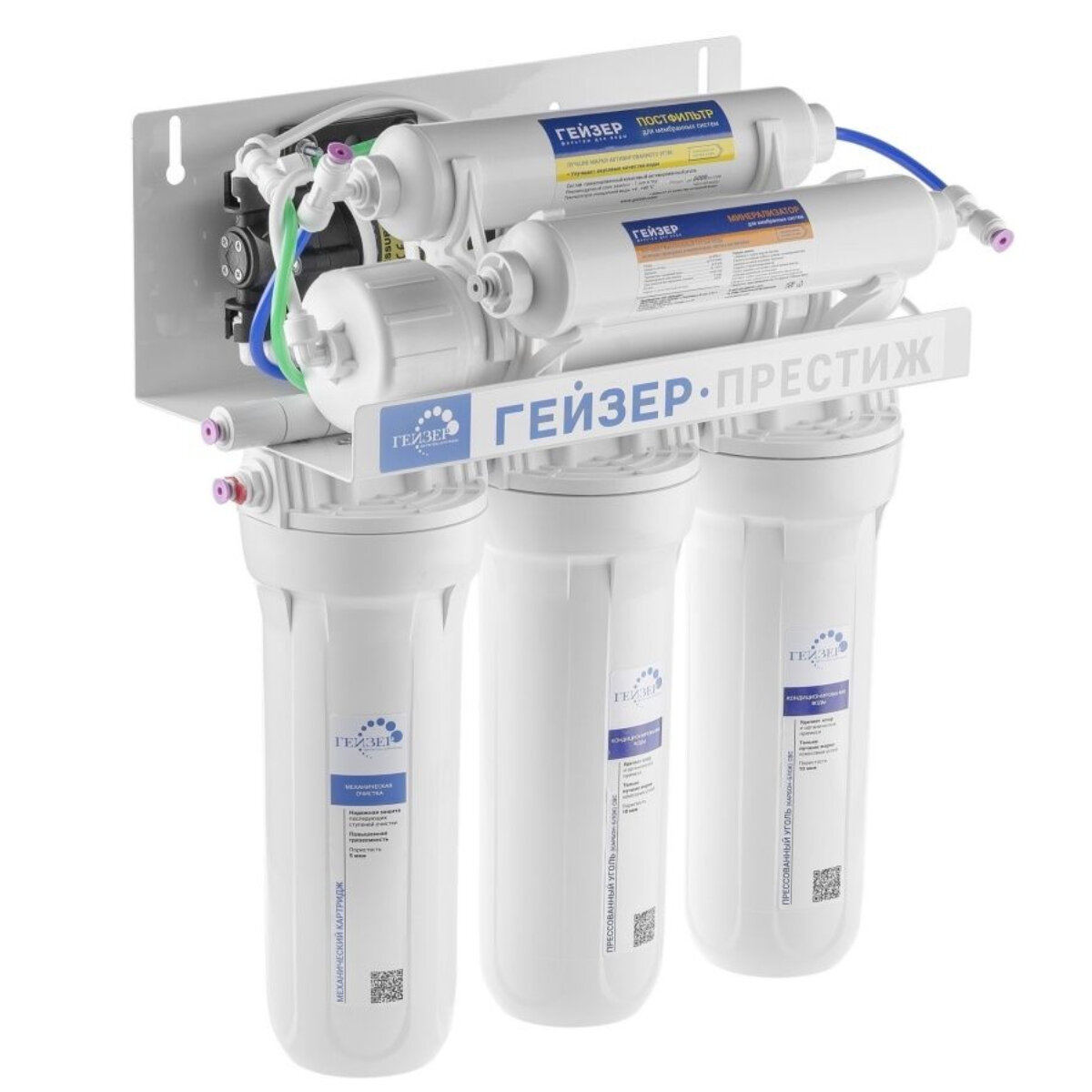 Система обратного осмоса Гейзер Престиж ПМ с помпой и минерализатором (бак 12 л) информация: