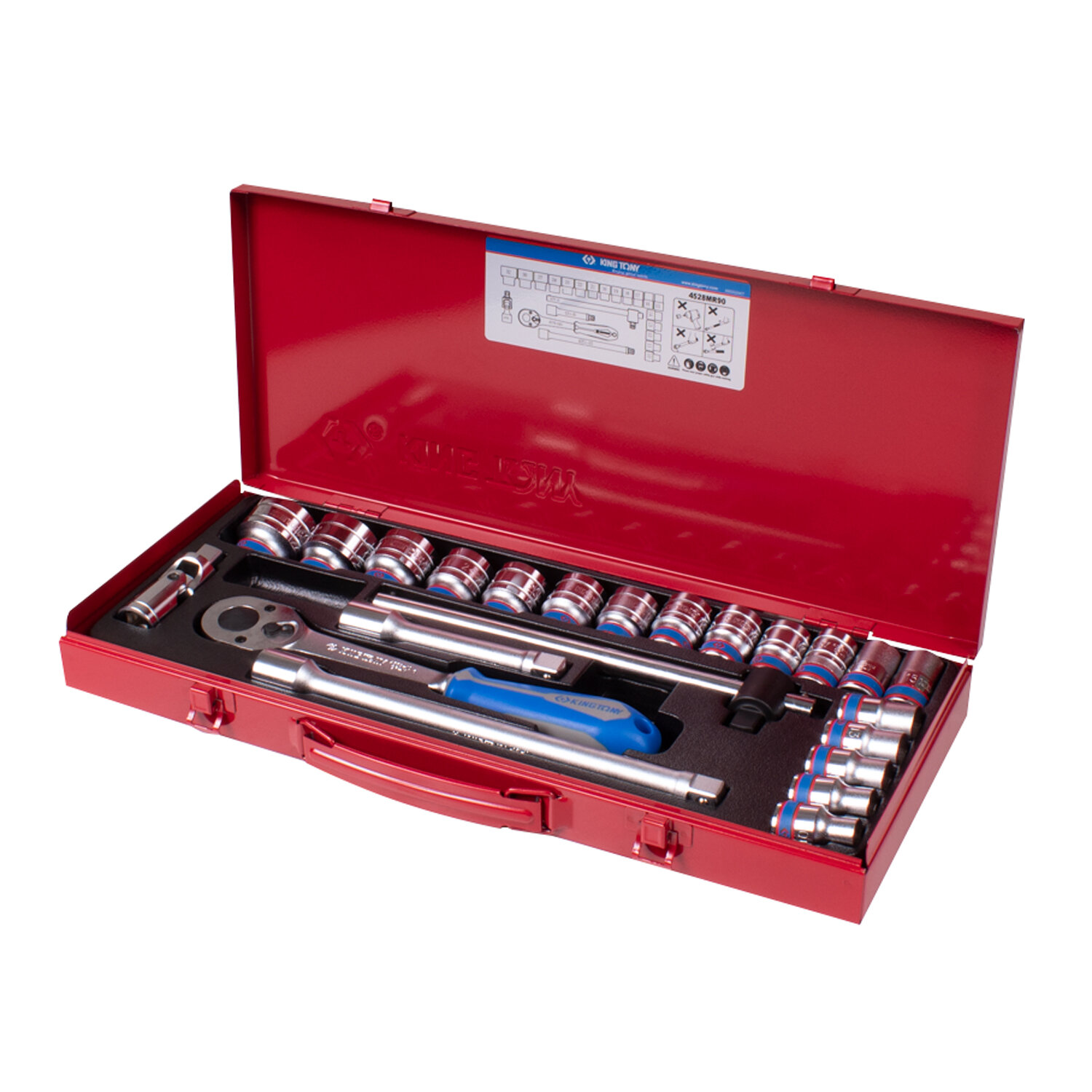 4528MR90 KING TONY Набор торцевых головок с принадлежностями 1/2", шестигранные, 10-32 мм, 23 предмета