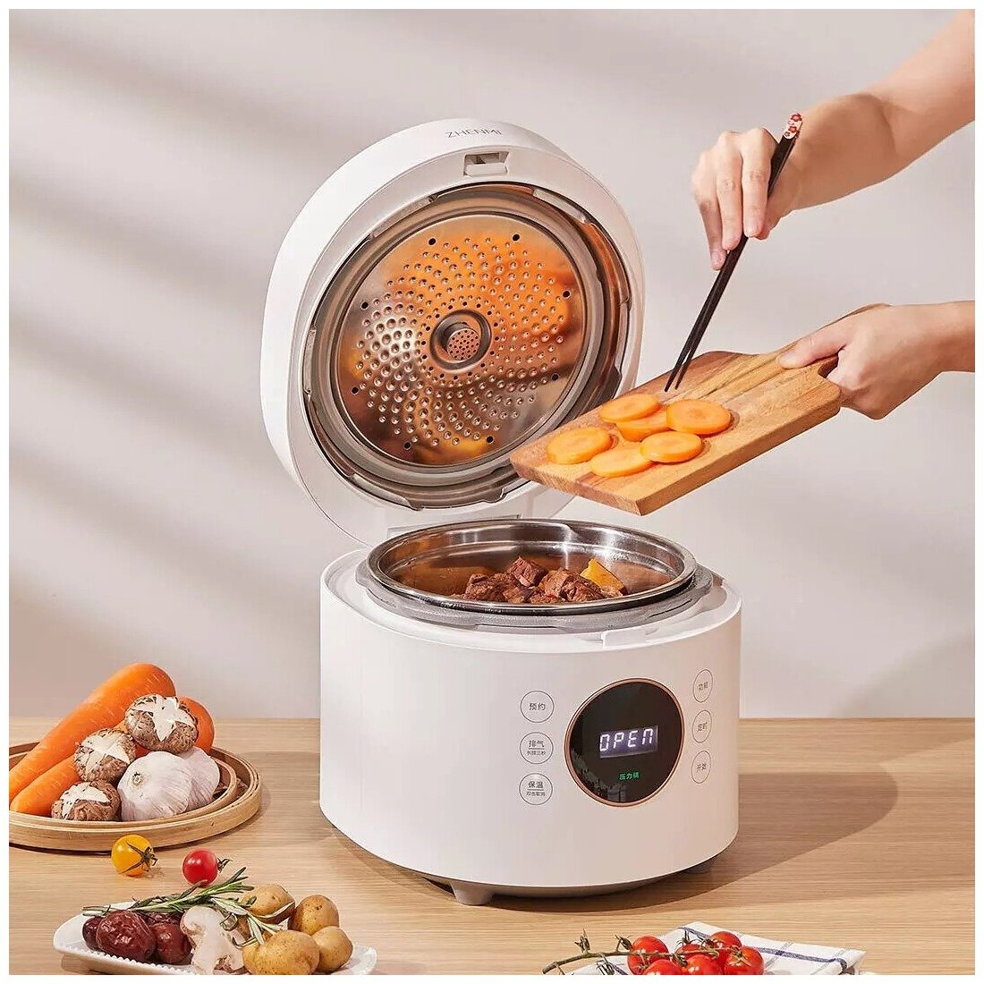 10 цен на Скороварка-рисоварка Zhenmi 2in1 Smart Pressure Cooker Rice Cooker White 4L (FY1) CN