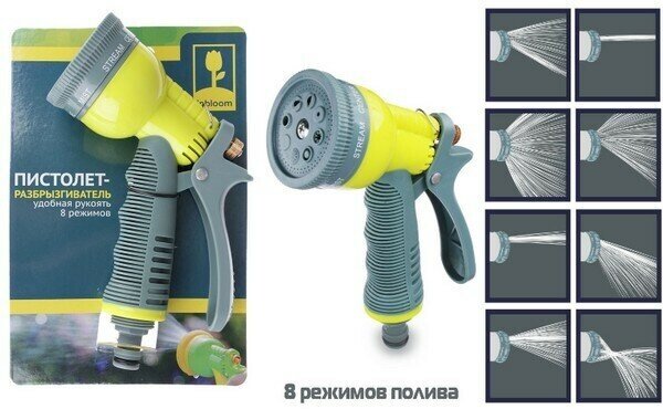 Inbloom Пистолет-распылитель, 8 режимов, с эластичной накладкой на ручку, пластик 161-005 .