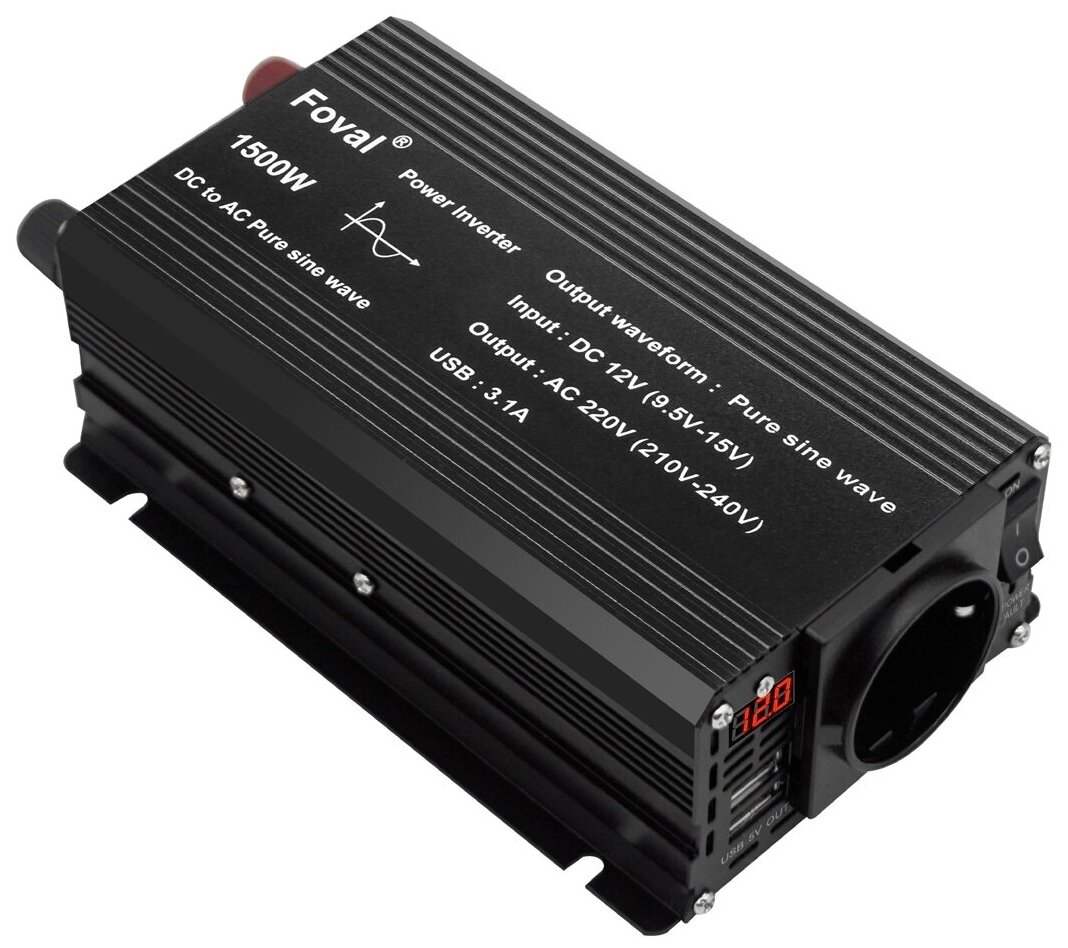 Отзывы на Автомобильный преобразователь напряжения инвертор FOVAL автомобильный 1500 w 12v-220v Чистая, немодифицированная синусоида.