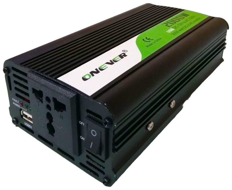 Инвертор автомобильный ONEVER, 2000Вт, 12В в 220В, с универсальной розеткой, чёрный информация: