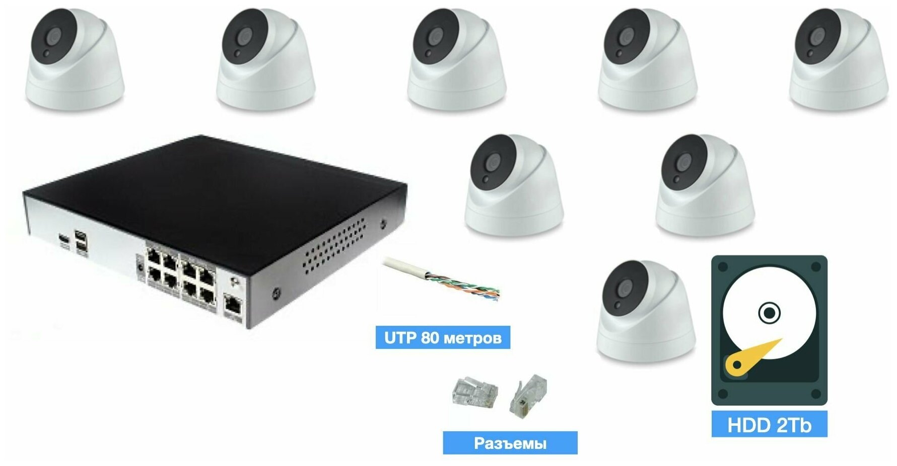 Полный IP POE комплект видеонаблюдения на 8 камер (KIT8IPPOEIP10PD3MP_HDD2TB_UTP-2) информация: