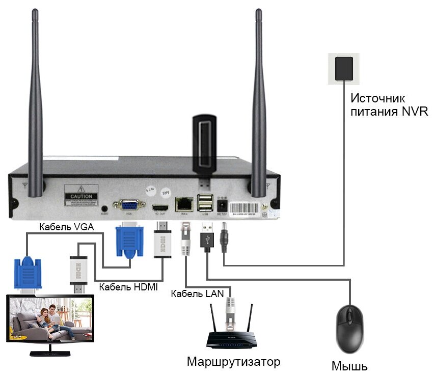 | Подробная комплектация | 1 х 8CH 3MP Беспроводной NVR; 4 x 3MP WI-FI камеры; 1 x Блок питания для NVR; 4 x адаптер для камеры (3 метра); 1 x 1м Lan кабель для NVR; 1 х USB мышь; 4 x Комплект винтов; 2 x Предупреждающие стикеры; Документация. |