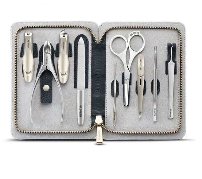 10 цен на MR. GREEN премиальный набор маникюрный и педикюрный, набор MR. GREEN, маникюрный набор, 9 в 1, мужской/женский маникюрный набор, элитная кожа