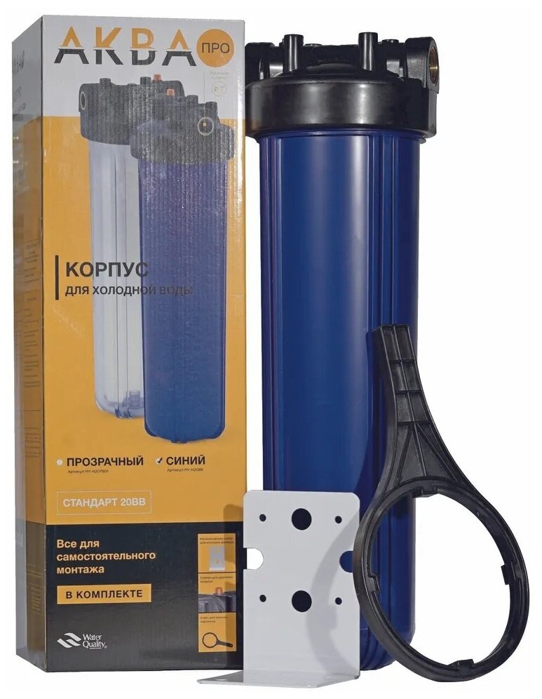 10 цен на Корпус магистрального фильтра АкваПро FH 20ВВ 1" (Big Blue 20") для холодной воды + ключ и крепление