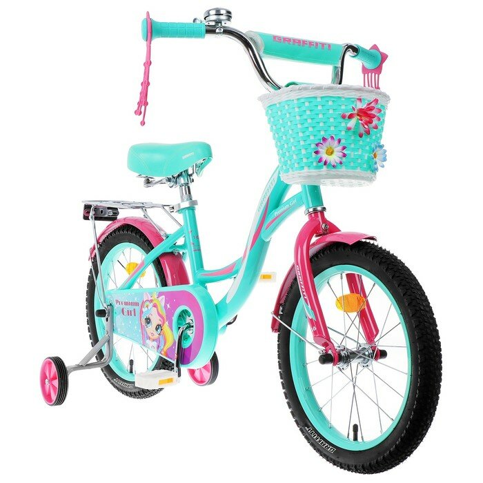 Велосипед 16" Graffiti Premium Girl, цвет бирюзовый/розовый информация: