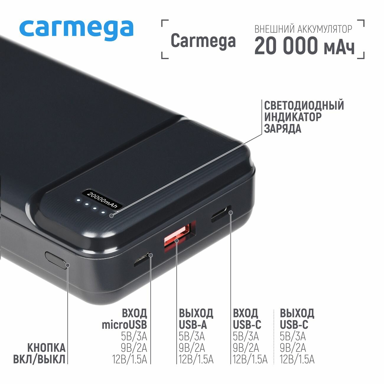 10 цен на Внешний аккумулятор Carmega 20000mAh Charge PD20 black (CAR-PB-204-BK)