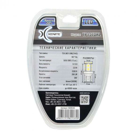 10 цен на Светодиодные линзы Xenite TP137DRL (T20/W21/5W/7443) 12Vдиод +50%,2шт