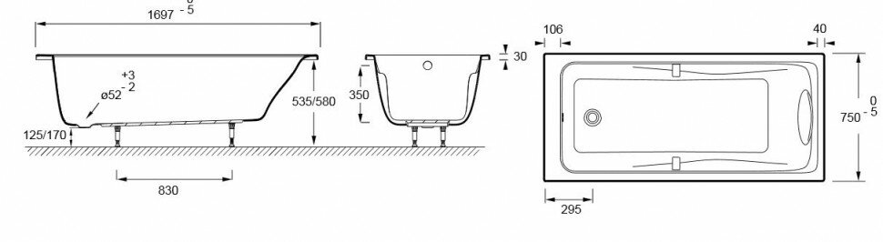 Ванна акриловая Jacob Delafon Odeon 170x75 E6062RU-00 информация: