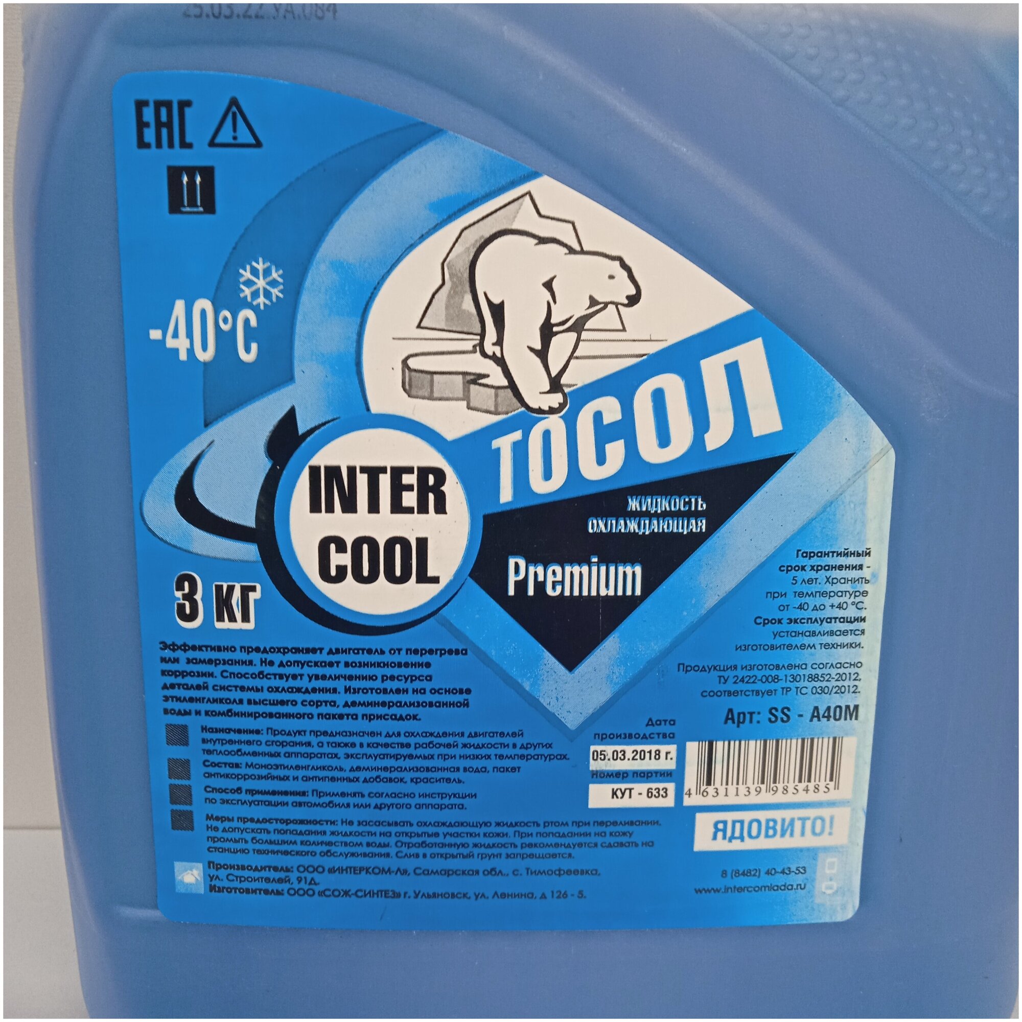 Тосол Inter Cool Premium 3кг информация: