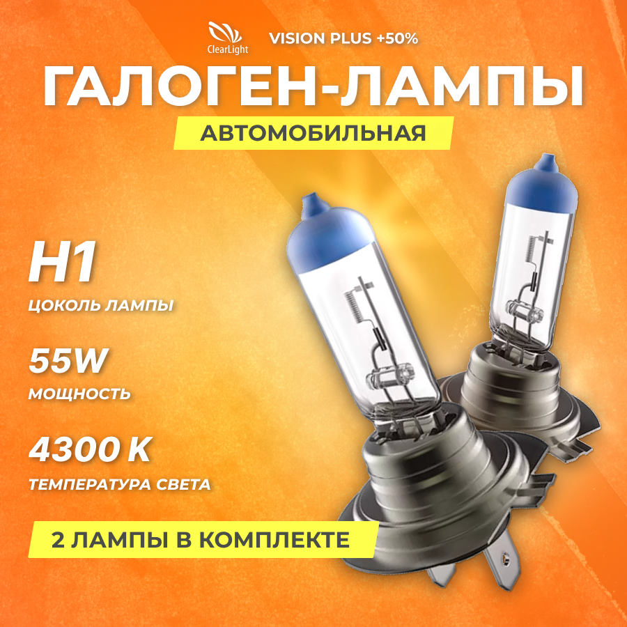 10 цен на Галогеновые лампы Clearlight H1 12V 55w Vision Plus +50% Light 2шт