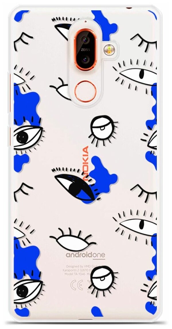 Силиконовый чехол на Nokia 7 Plus Синий узор / для Нокиа 7 Плюс информация: