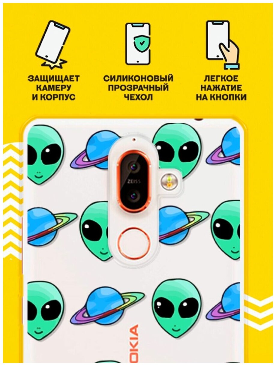 Силиконовый чехол на Nokia 7 Plus Узор НЛО / для Нокиа 7 Плюс информация: