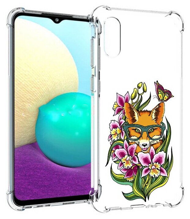 Чехол задняя-панель-накладка-бампер MyPads Лиса в цветах для Samsung Galaxy A02 SM-A022 (2021)/Samsung Galaxy M02 (2021) противоударный информация: