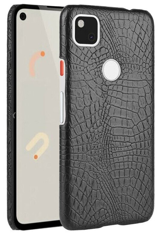 Чехол панель бампер MyPads для Google Pixel 4a элегантный тонкий на пластиковой основе с дизайном под кожу крокодила черный информация:
