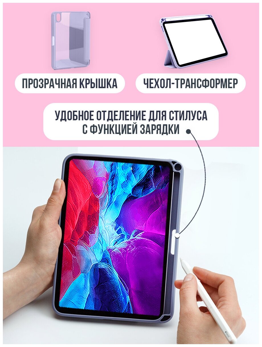 Чехол-обложка для Apple iPad Mini 6 (лавандовый)/Чехол для стилуса Apple iPad/ Чехол с подставкой для iPad/Обложка Smart Cover для iPad mini 2021 информация: