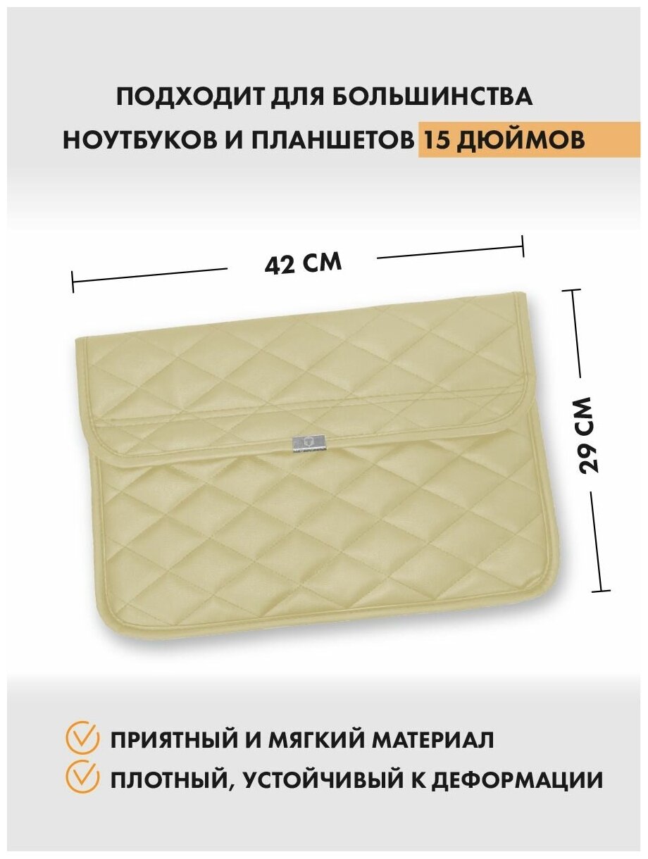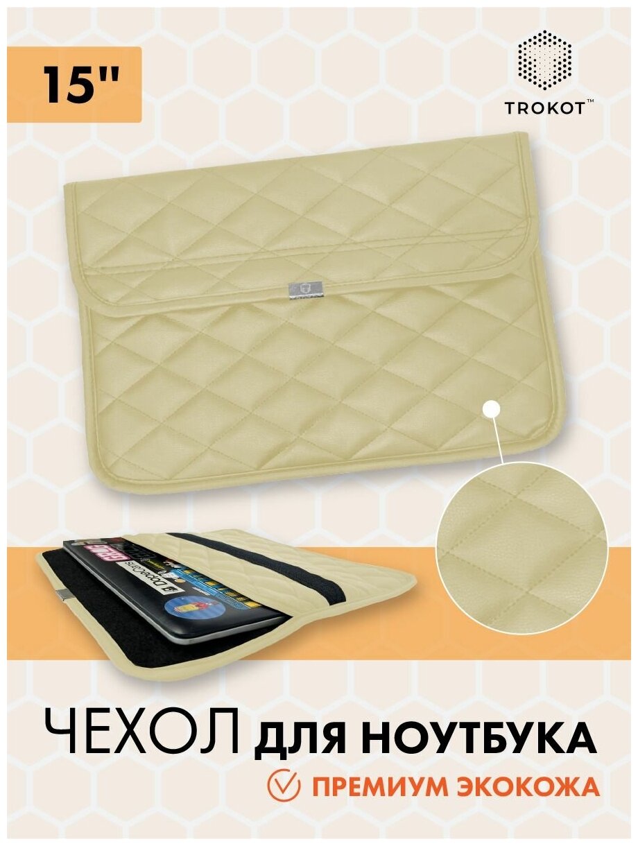 Сумка-чехол TROKOT для ноутбука или планшета 15", папка для документов, Материал: Экокожа, Цвет: Бежевый информация:
