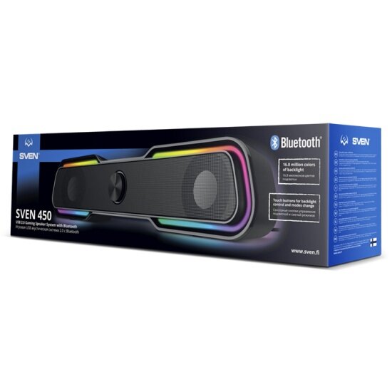 Колонки 2.0 Sven 450, черный (10 Вт, питание USB, Bluetooth, подсветка) информация: