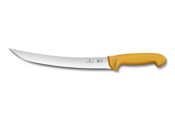 Нож кухонный Victorinox Swibo (5.8435.22) стальной разделочный для мяса лезвие 220мм прямая заточка желтый информация: