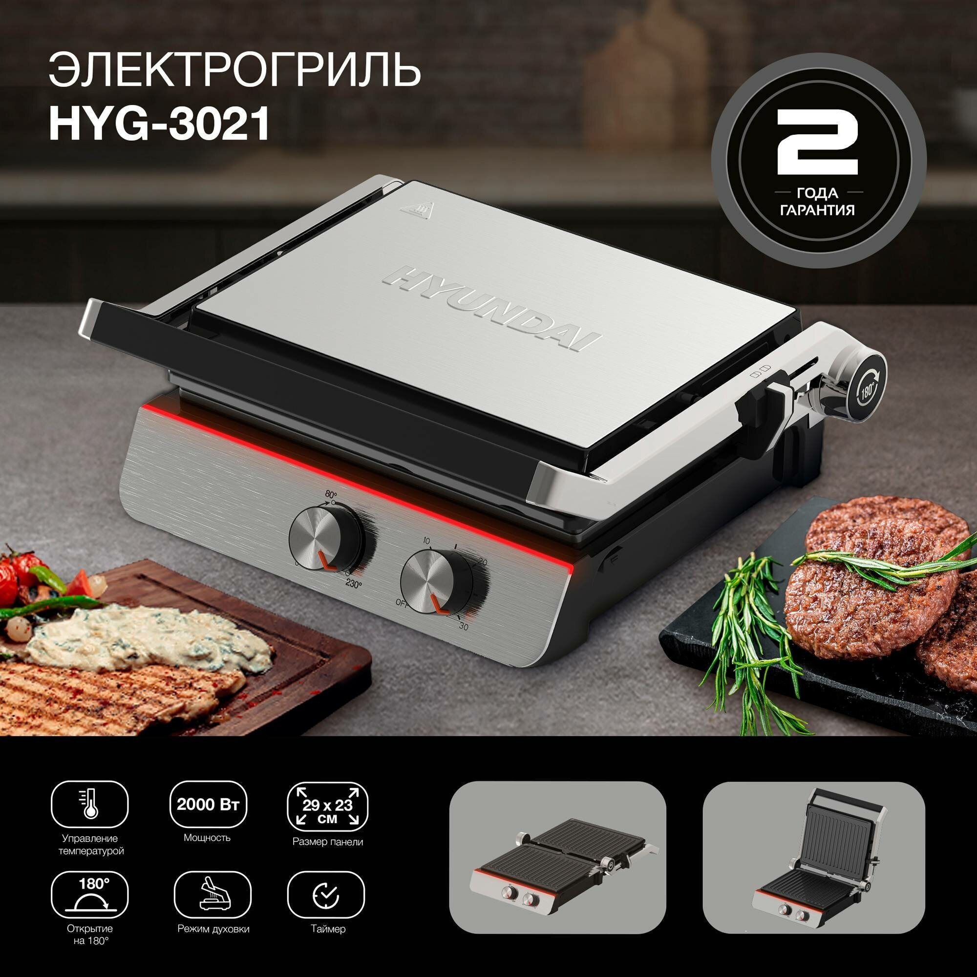 10 цен на Электрогриль Hyundai HYG-3021 черный/серебристый