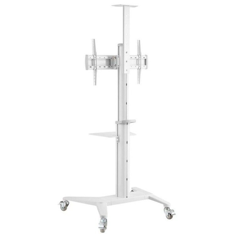 Стойка Digis DSM-P764C мобильная для ТВ 37"-70" до 70 кг, VESA до 600x400мм, Алюминий, белая, безынструментальный наклон -12°/+5°, регулировка высоты ТВ и полок для камеры и источников, поворот в портретное положение (90°)