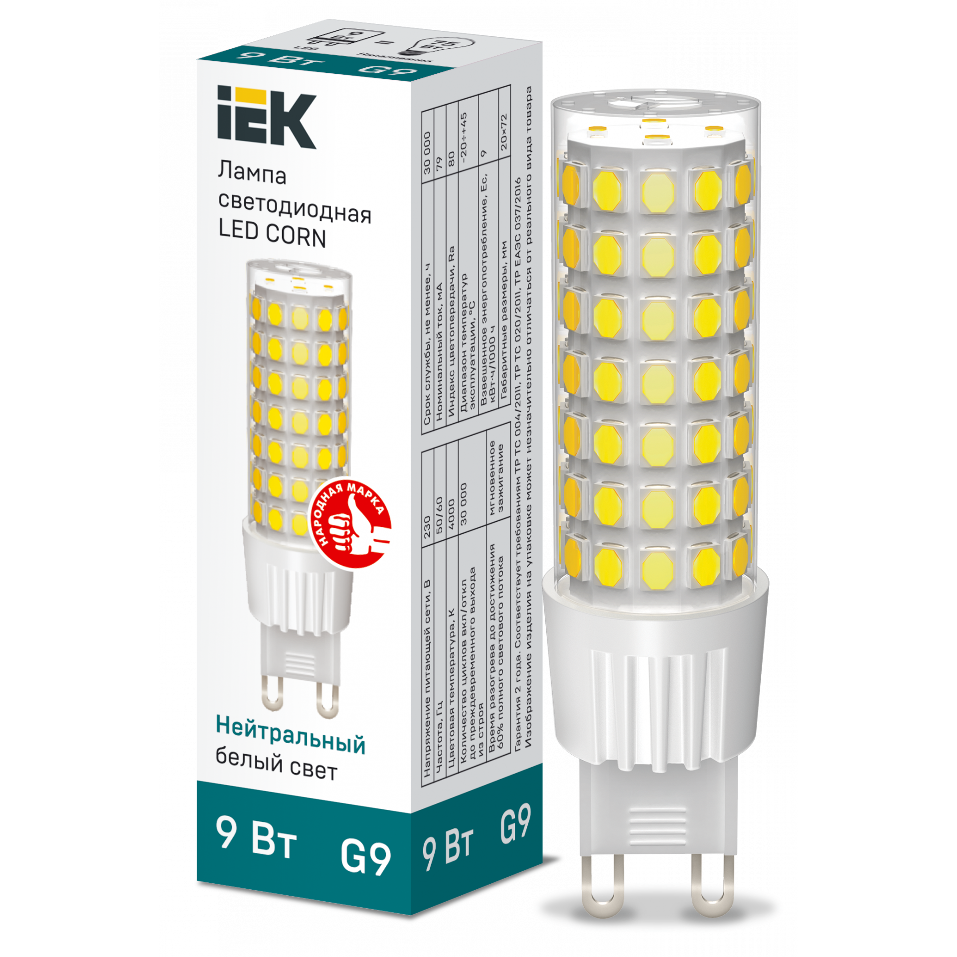Лампа Светодиодная CORN капсула 9Вт 230В 4000К керамика G9 IEK LLE-CORN-9-230-40-G9 (1 шт.) информация: