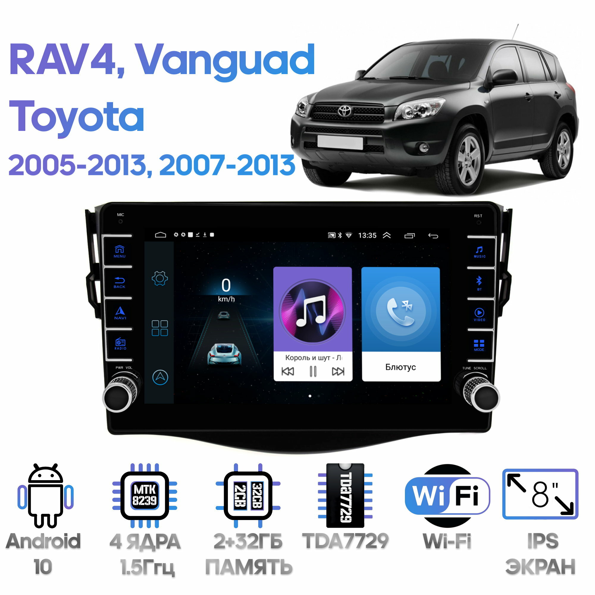 Штатная магнитола Wide Media Toyota RAV4 2005 - 2013, Vanguard 2007 - 2013 [Android 8, WiFi, 2/32GB, 4 ядра] информация: