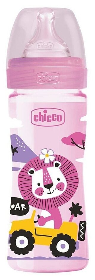 Chicco Бутылочка с соской из силикона Well-Being PP средний поток, 250 мл, boy/girl new, с 2 месяцев, розовый