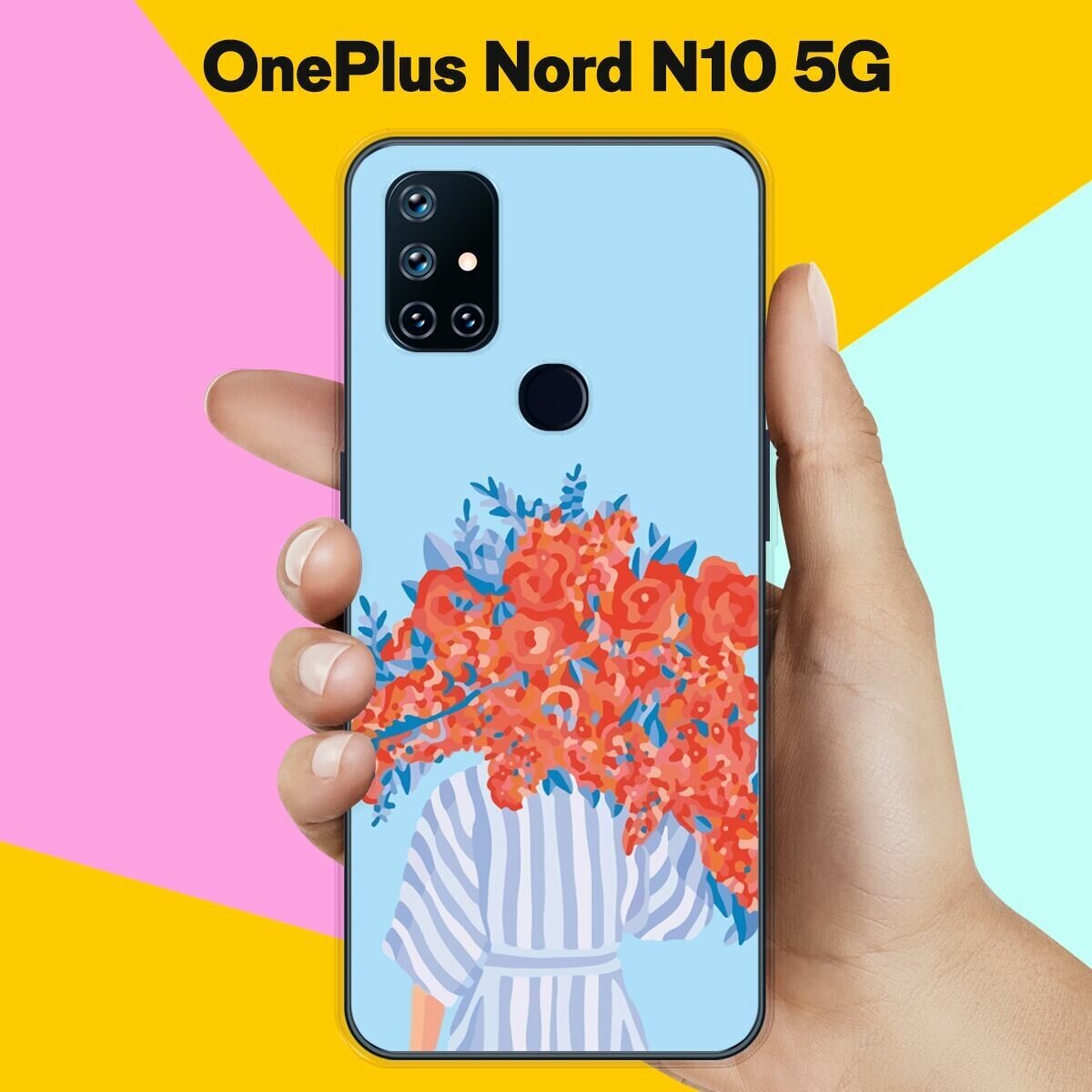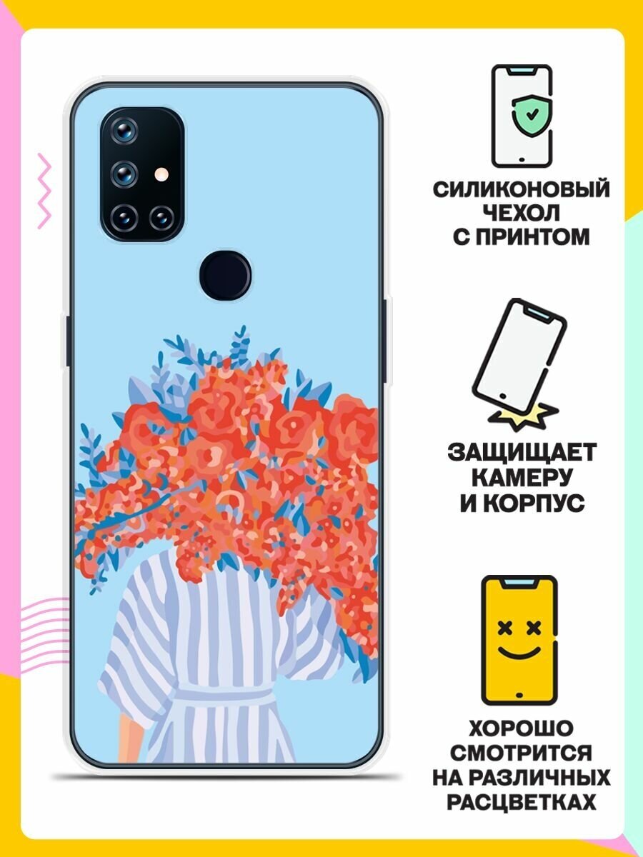10 цен на Силиконовый чехол на OnePlus Nord N10 5G Красные цветы / для ВанПлас Норд Н10 5Джи