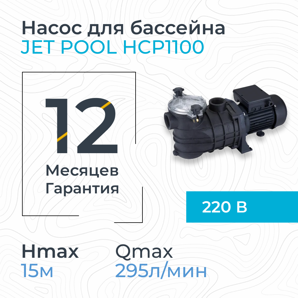 Насос для бассейна UNIPUMP JET POOL HCP 1100 - 1,1 кВт (однофазный, Hmax 15 м, Qmax 295 л/мин) информация: