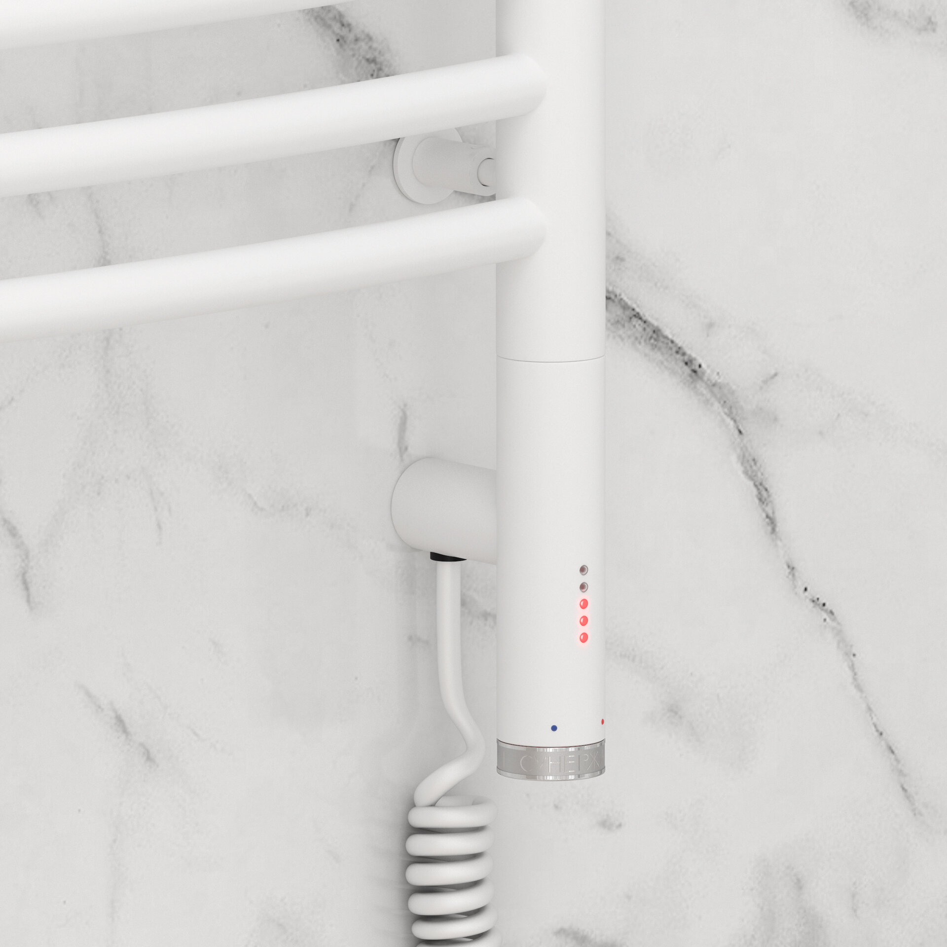 Полотенцесушитель дизайнерский электрический, профильный BAU Stella 8х80, 2 коллектора, 3 крючка (Белый DB-0071)