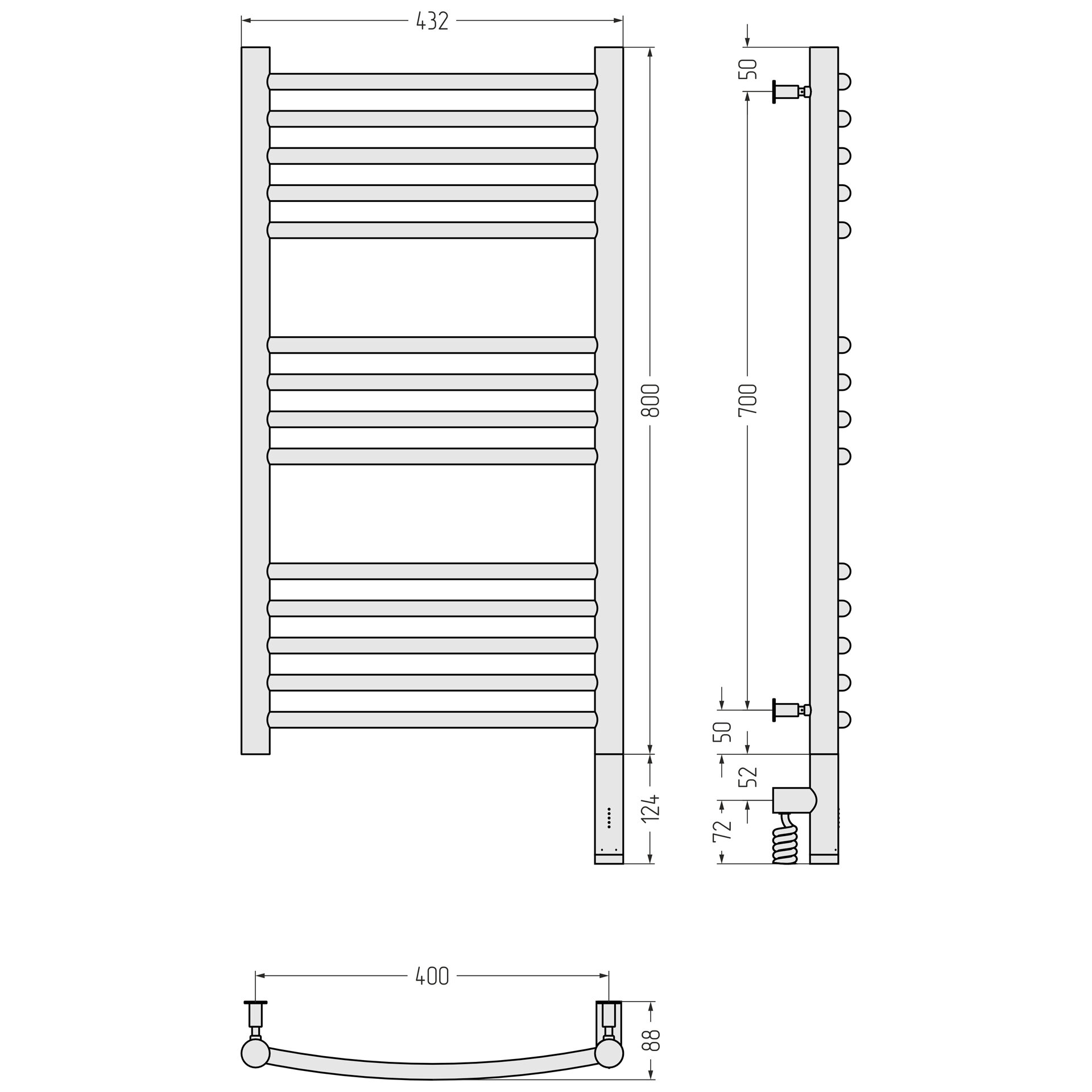 Полотенцесушитель электрический Сунержа Богема 3.0 выгнутая 800х400 МЭМ правый Матовый белый информация: