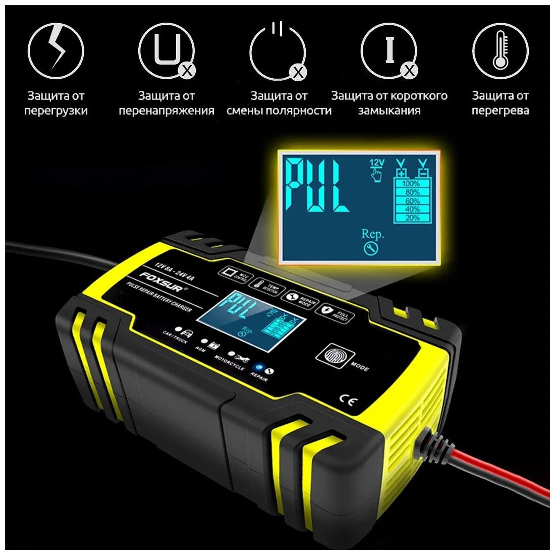 Автоматическое умное зарядное устройство FOXSUR для 12В-24В автомобильных аккумуляторов (акк. 4-100 Ач) информация: