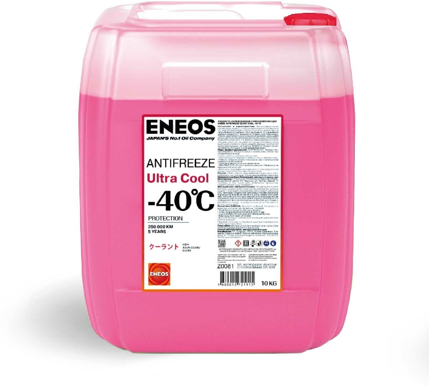 ENEOS Z0081 Жидкость охлаждающая Antifreeze Ultra Cool -40C (pink) G12+ 10л