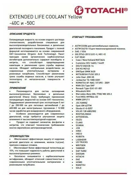 Антифриз TOTACHI EXTENDED LIFE COOLANT -50 C, 20л информация:
