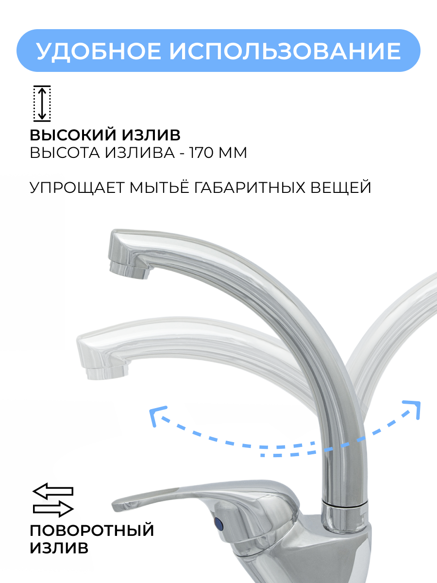 Смеситель для кухни Центр Сантехники Престиж ЦС-СМ 27/2Г D35 М42, однорычажный, хром информация: