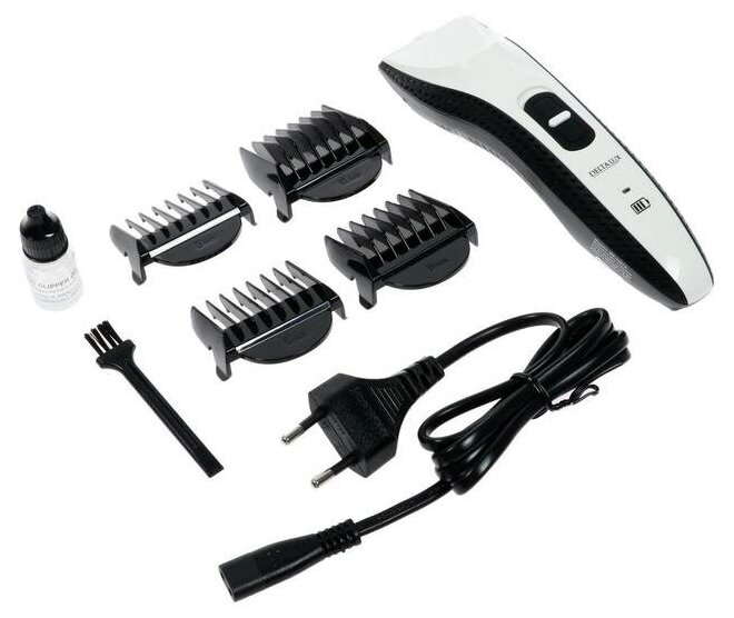 Машинка для стрижки аккумуляторная DELTA LUX DE-4207A, 4-СЪЕМНЫХ ГРЕБНЯ, белый с чёрным