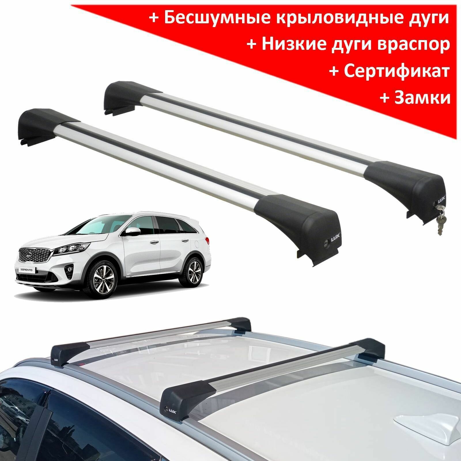 10 цен на Багажник на Киа Соренто Прайм, 2017-2020 (Kia Sorento III Prime, 2017-2020), на интегрированные рейлинги, Lux Bridge, серебристые дуги