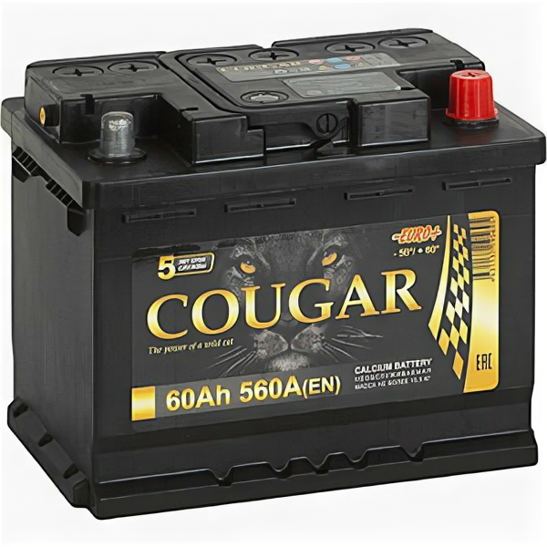 Аккумулятор автомобильный Cougar Power R+ 12В 60Ач 560А, Обратная (-/+) полярность