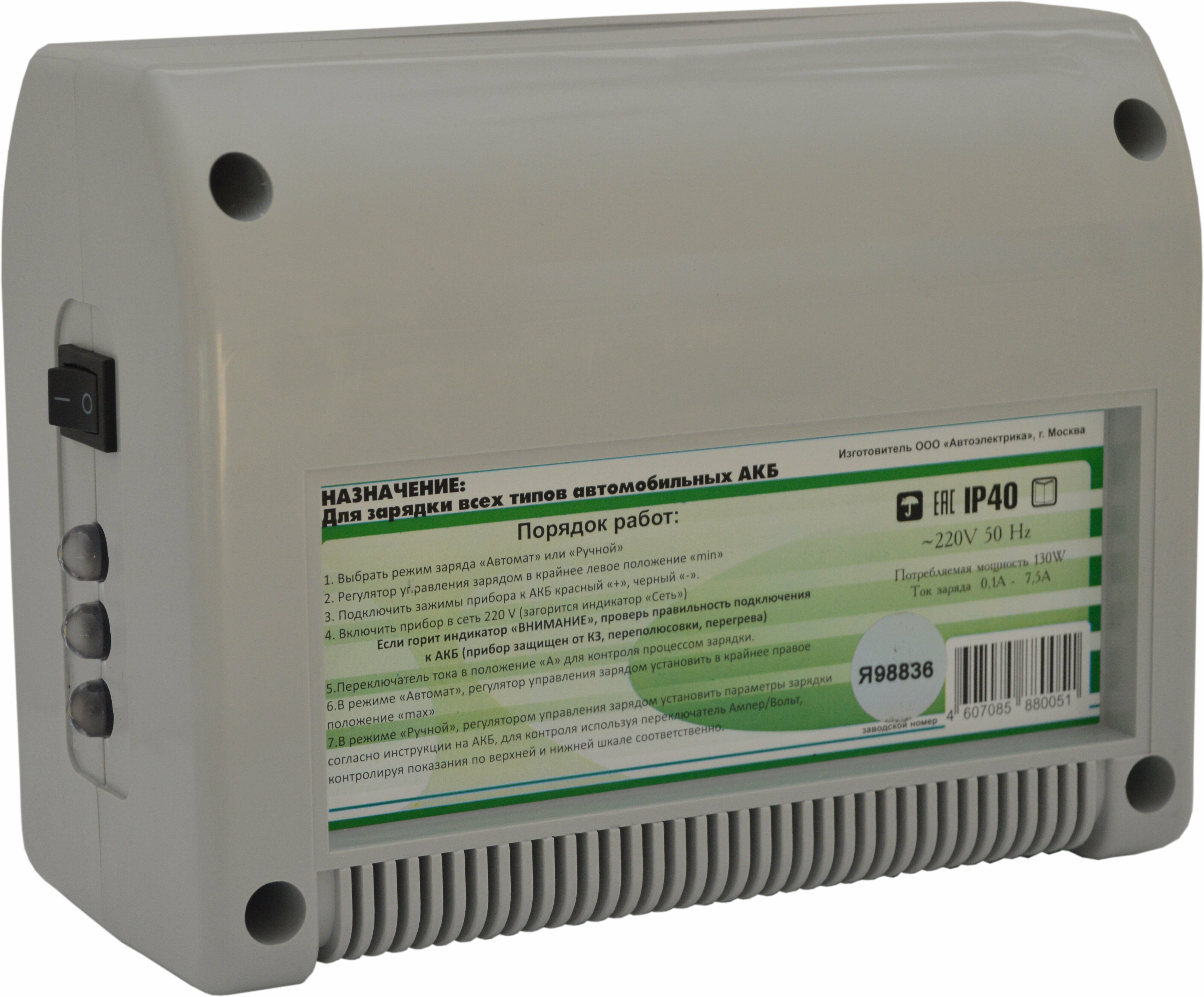 Зарядное устройство (12V/10A) с фонарем с регулировкой (Автоэлектрика) информация: