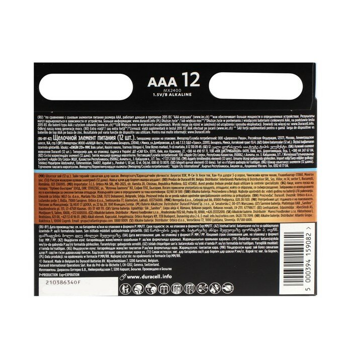 10 цен на Батарейка алкалиновая Duracell OPTIMUM, AAA, LR03-12BL, 1.5В, блистер, 12 шт.