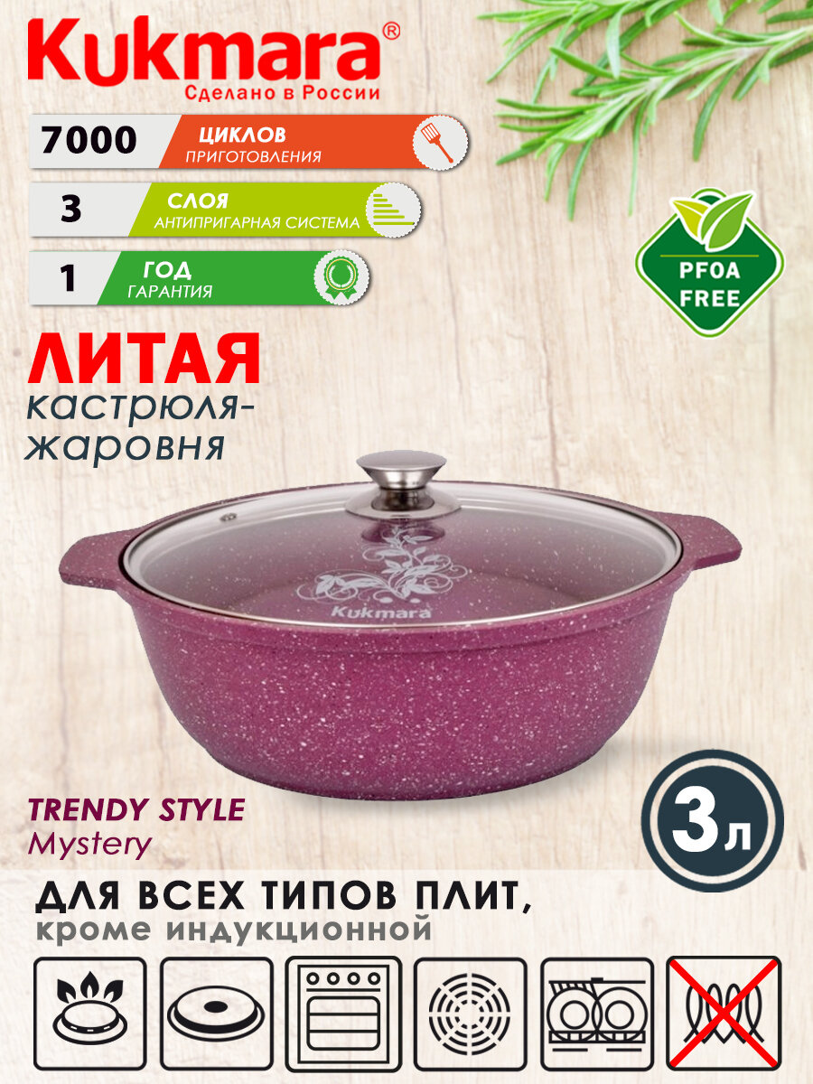 Отзывы на Кастрюля-жаровня 3л со стеклянной крышкой, АП линия "Trendy style" (mystery) "Kukmara" ж31tsm