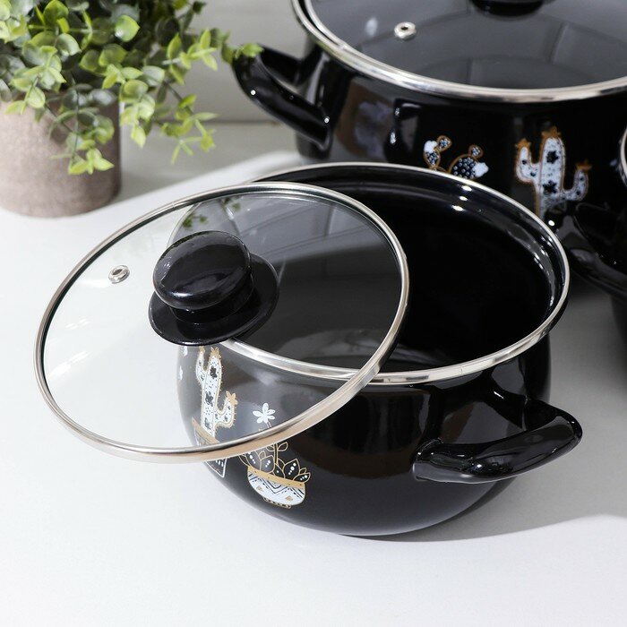 10 цен на Interos Набор кастрюль «Чёрные кактусы», 3 предмета: 2,1 л, 3,1 л, 4 л, индукция, цвет чёрный
