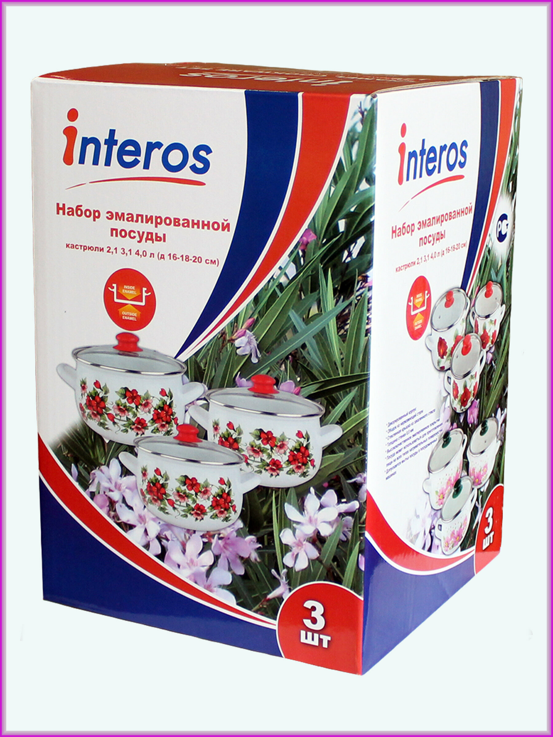 Набор кастрюль Сибирские товары Пионы, эмалированные, 2, 3 и 4 л