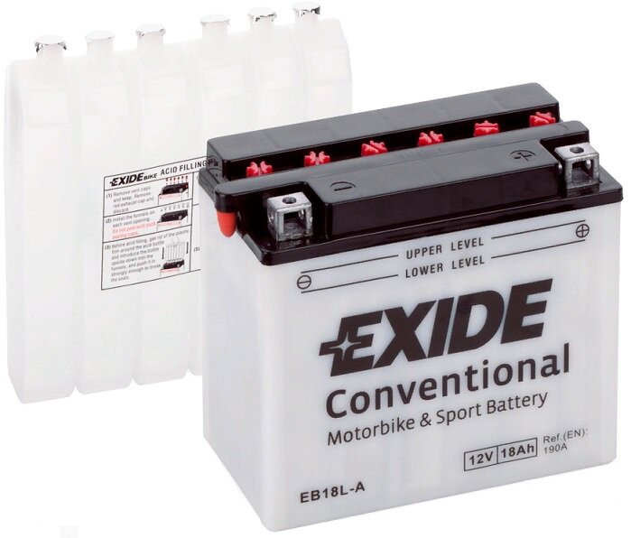 Мы выбрали 10 лучших цен на Аккумулятор для мотоцикла и скутера Exide Conventional 18 А/ч 190 А обр. пол. с/зар. с эл. EB18L-A (180х90х162) YB18L-A. Перед тем как купить Аккумулятор для мотоцикла и скутера Exide Conventional 18 А/ч 190 А обр. пол. с/зар. с эл. EB18L-A (180х90х162) YB18L-A посмотрите найденные предложения из Яндекс Маркета и других сайтов на основе XML фидов.