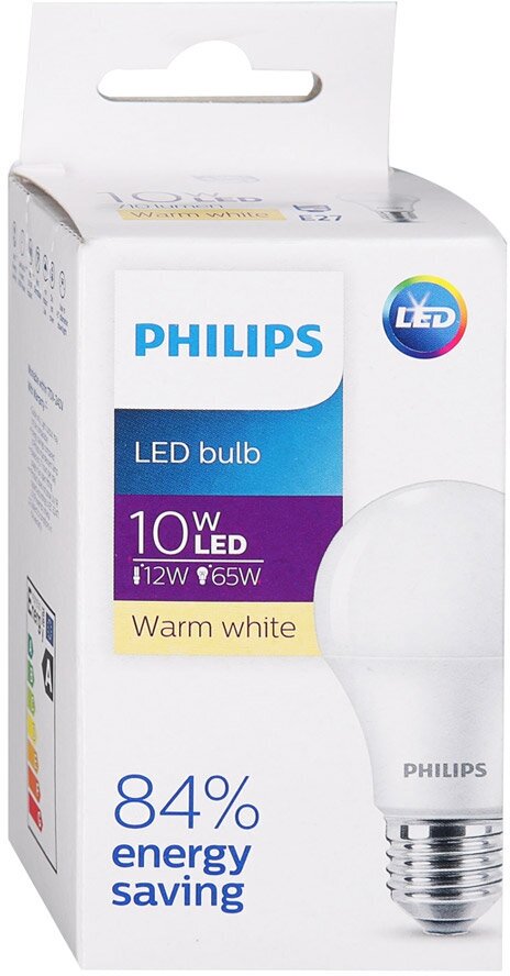 Отзывы на Лампочка светодиодная Philips Груша A E27 10Вт 220В 710Лм 3000К Теплый белый, упаковка 10шт