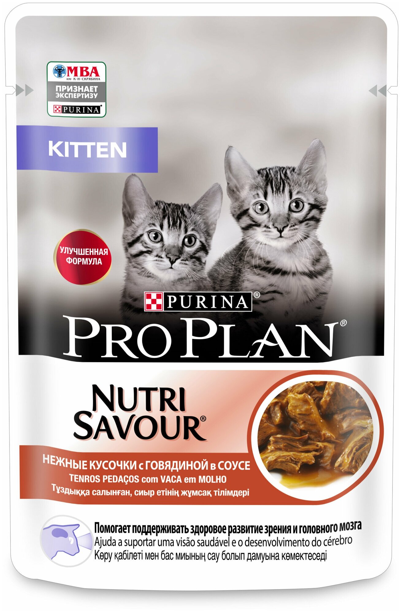 Консервы Pro Plan Nutri Savour для котят, с говядиной в соусе, Пауч, 85 г x 26шт