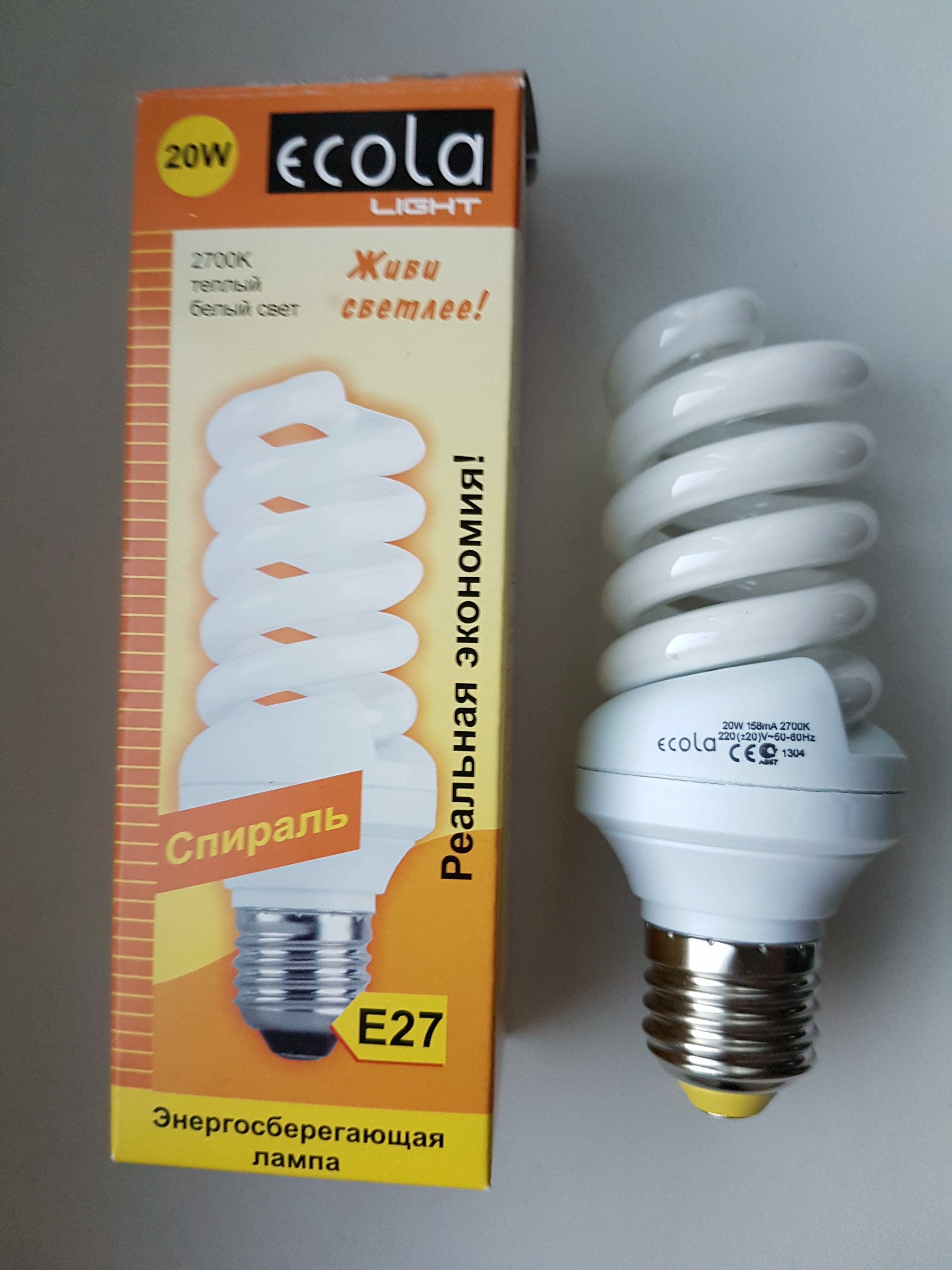 Отзывы на Лампа энергосберегающая люминесцентная Ecola Light Spiral 20W 220V E27 4000K 127*48мм KS-lampaE27W20-sale